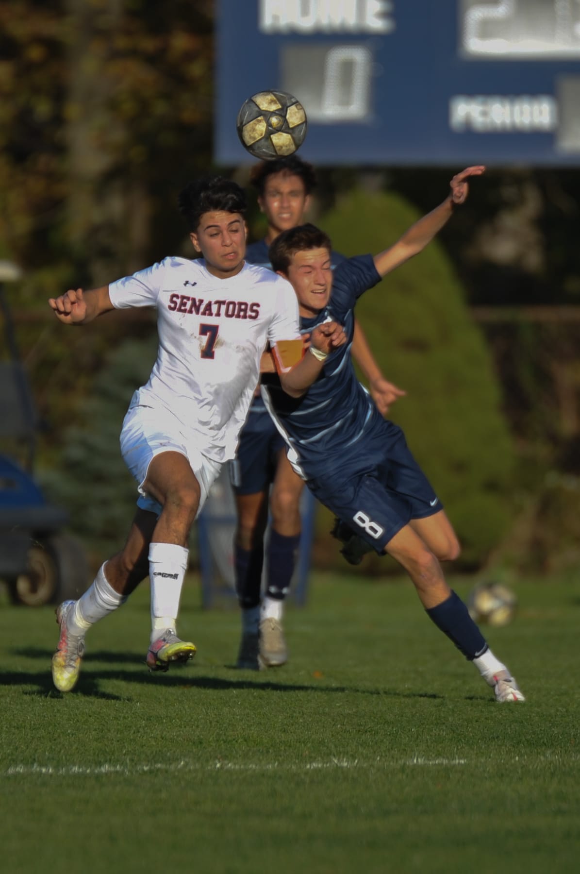 Erwin Reyes of McMahon and Graham Barnes battles for a 50/50 ball. Dave Ruden November 4, 2020 Leave a Comment