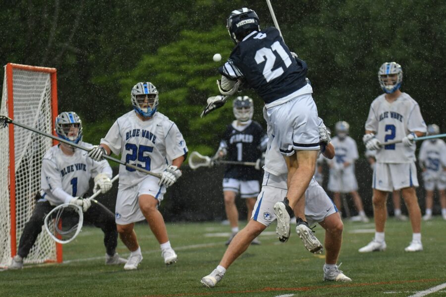 Charlie Howard of Staples fires a shot against Darien.