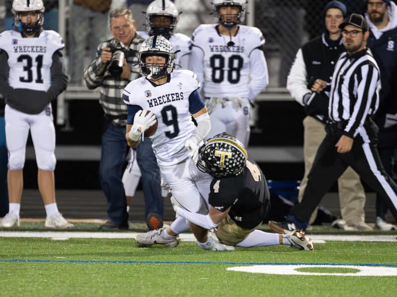 Trumbull’s Will Carley tackles Staples’ Shane Sandrew. (David G. Whitham) Dave Ruden November 26, 2024 Leave a Comment