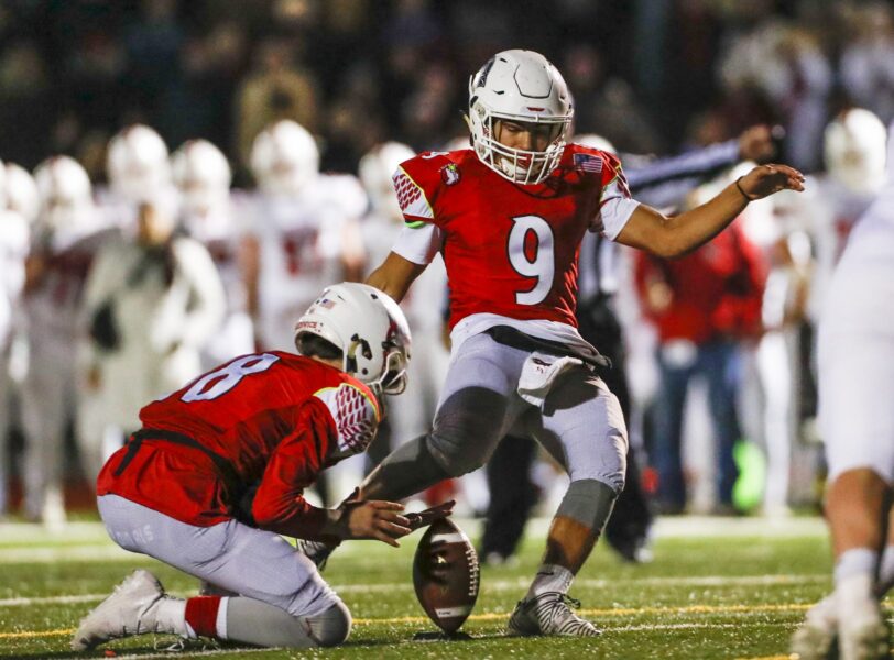 Greenwich’s Zach Moore kicks a field goal to extend Greenwich’s lead. Dave Ruden November 28, 2017 Leave a Comment