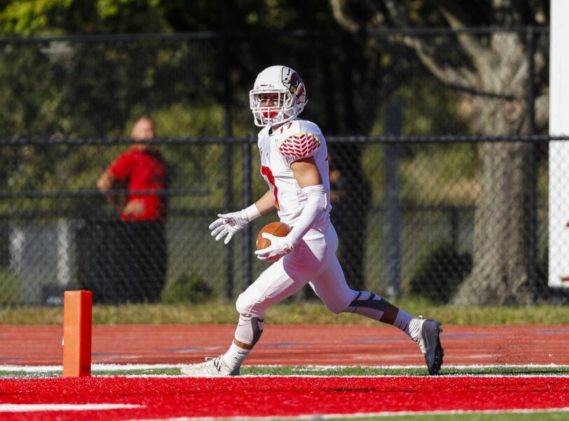Greenwich’s Evan Weigold with a touchdown.