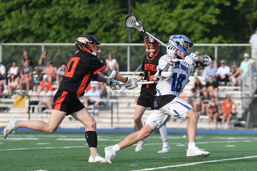 Finn Pokorney of Darien scores a second half goal against Ridgefield. Dave Ruden May 26, 2021 Leave a Comment
