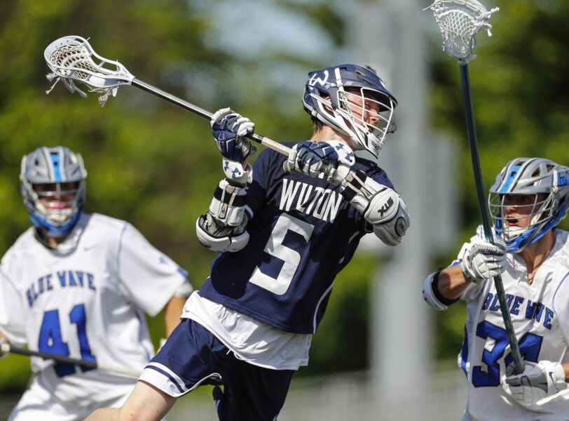 Wilton’s Daniel Sullivan takes a shot in the first half.
