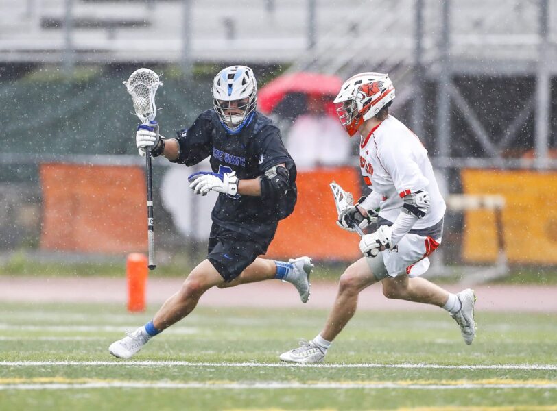 Darien’s Blake Sommi tries to get around Ridgefield’s Ray Dearth. Dave Ruden May 12, 2018 Leave a Comment