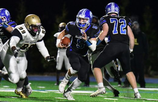 Darien Quarterback Jack Joyce carries the ball up field. Dave Ruden November 28, 2017 Leave a Comment