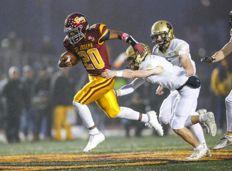 St. Joseph’s Jaden Shirden gallops for a first down.