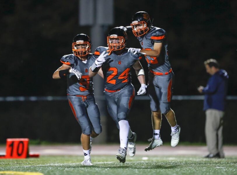 RidgefieldÕs Daniel Moroney celebrates his second interception of the night. Dave Ruden December 3, 2019 Leave a Comment