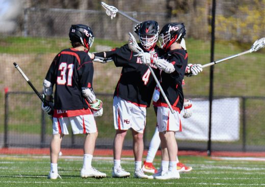 The New Canaan Rams celebrate a goal by Benjamin Conley (4). Dave Ruden April 26, 2018 Leave a Comment