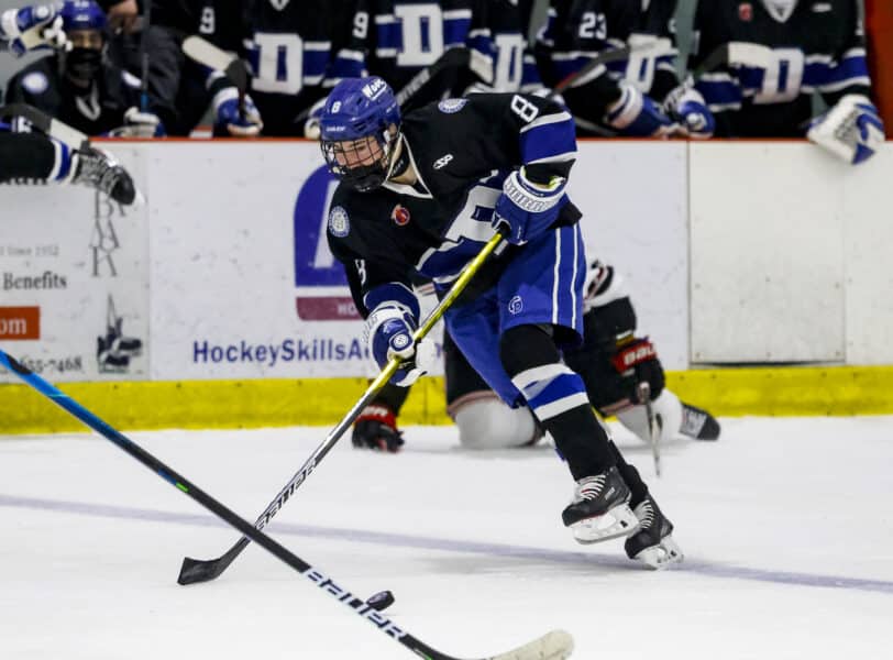 DarienÕs Patrick Thurlow carries the puck into the offensive zone. Dave Ruden February 18, 2021 Leave a Comment