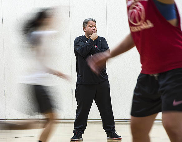 Fairfield Warde high school girls basketball head coach Dave Danko, watching his team at practice at Warde high school Fairfield, CT on Monday, January, 5th, 2015.