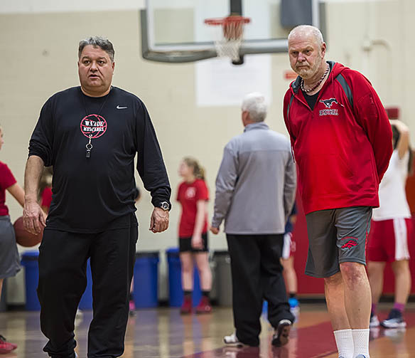 Fairfield Warde high school girls basketball head coach Dave Danko, and assistant coach Ed Huydic during practice at Warde high school Fairfield, CT on Monday, January, 5th, 2015.