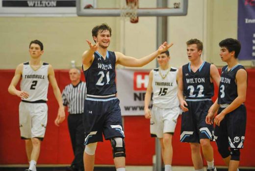 John Williams (21) of the Wilton Warriors get the crowd going. Dave Ruden February 28, 2017 Leave a Comment