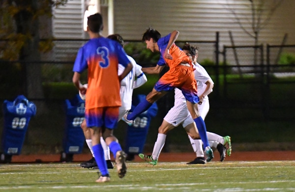 Tiago DosReis of Danbury shoots and scores against Fairfield Ludlowe. Dave Ruden October 29, 2018 Leave a Comment