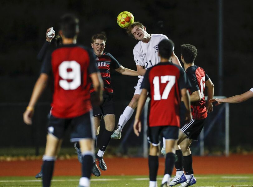 Wilton’s Parker Ward gets a head on a direct kick.