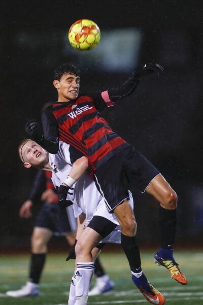 Warde’s Daniel Villalba leaps over Trumbull’s Justin Horvath. Dave Ruden November 7, 2019 Leave a Comment