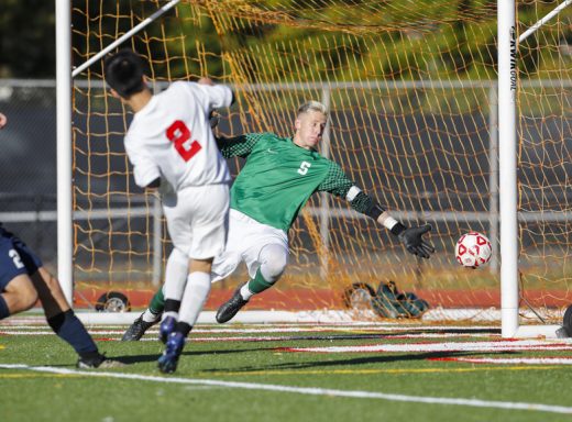 Greenwich’s Shoki Araki puts the ball past Staples’ Ziggy Hallgarten. Dave Ruden October 28, 2016 Leave a Comment