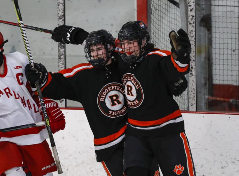 GreenwichÕs Kees van Wees and Will Stewart celebrate tying the score at one. Dave Ruden February 4, 2020 Leave a Comment