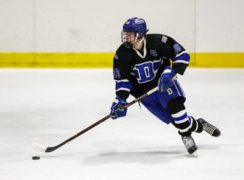 Darien captain William Dickson carries the puck through the neutral zone. Dave Ruden February 28, 2018 Leave a Comment
