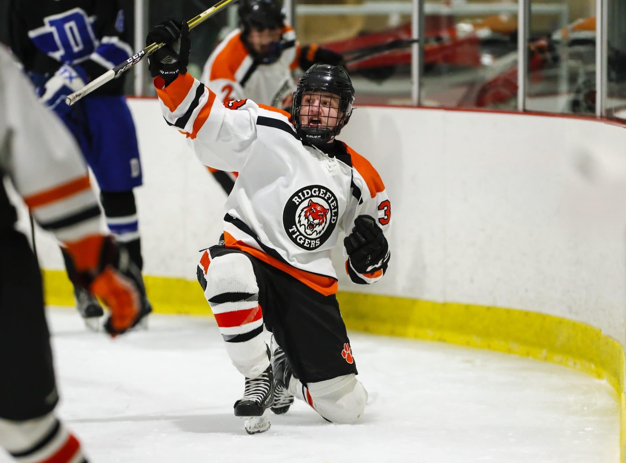 Ridgefield’s Matt Walker celebrates a goal early in the first period. Dave Ruden February 28, 2018 Leave a Comment