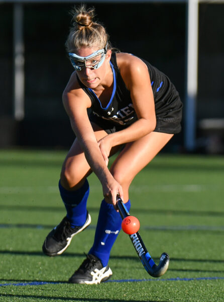 Kiki Tropsa (23) of Darien sends the ball up field.