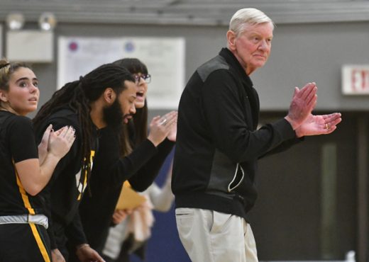 Trinity Catholic Head Coach Mike Walsh applauds his teams efforts . Dave Ruden January 3, 2019 Leave a Comment