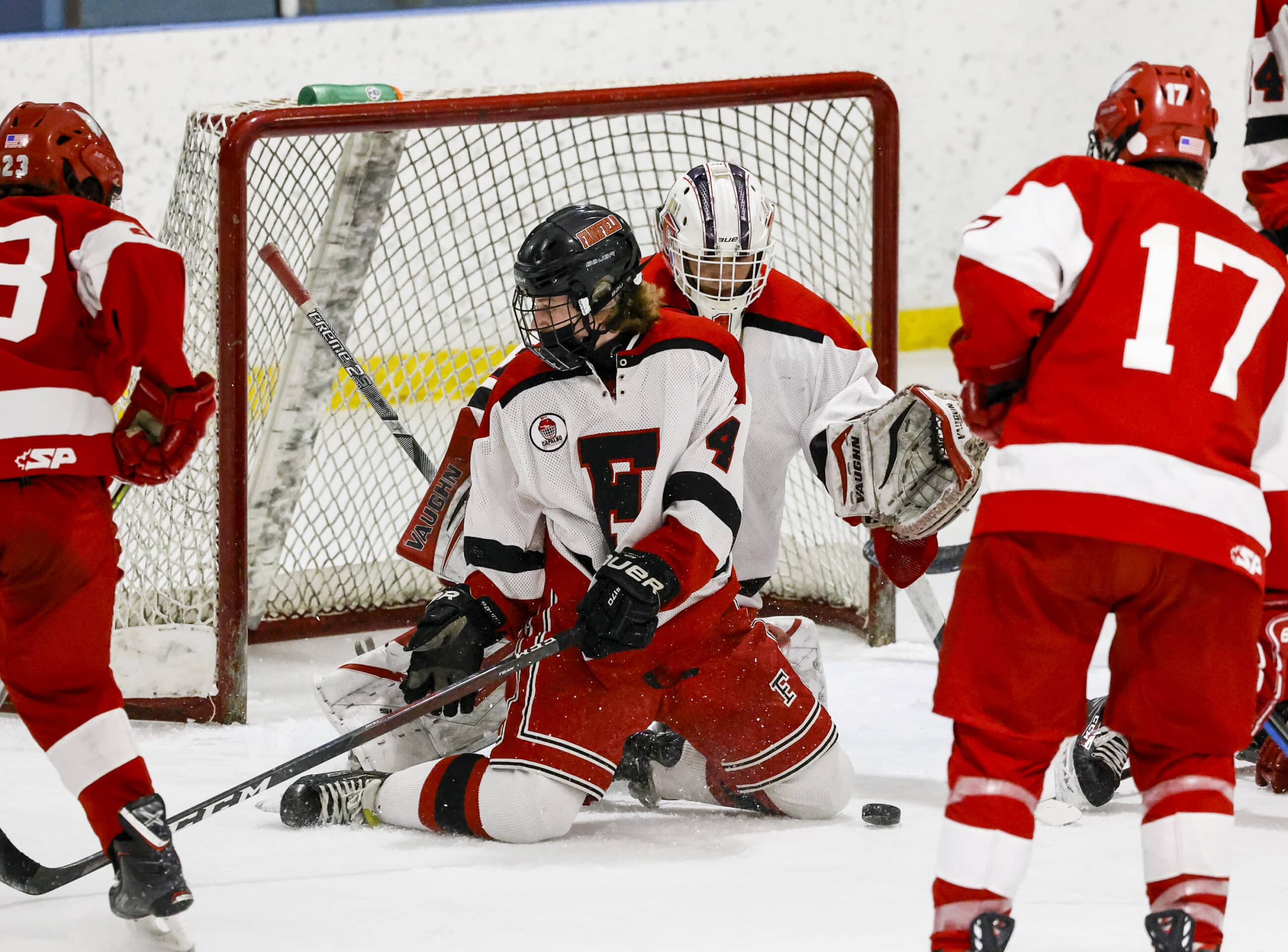 FairfieldÕs Bobby Winter blocks a shot in front of goalie Aidan O’Rourke. Dave Ruden March 26, 2021 Leave a Comment