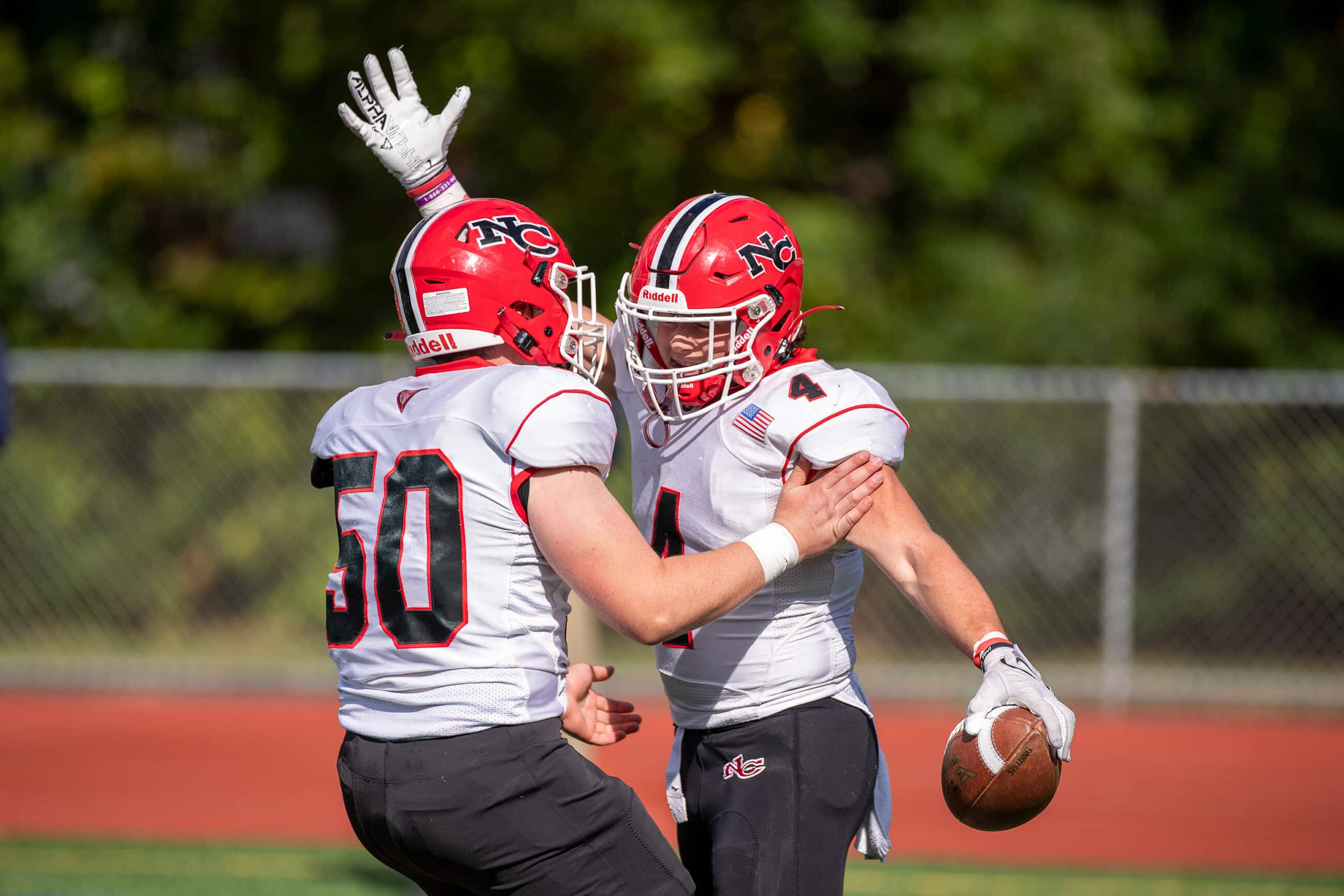 New Canaan’s Vincent Cognetta celebrates his touchdown with Graham Ladley Dave Ruden October 17, 2021 Leave a Comment