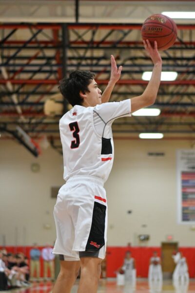 NewCanaan’s Ben Sarda shoots a three pointer from the corner. Dave Ruden February 13, 2019 Leave a Comment