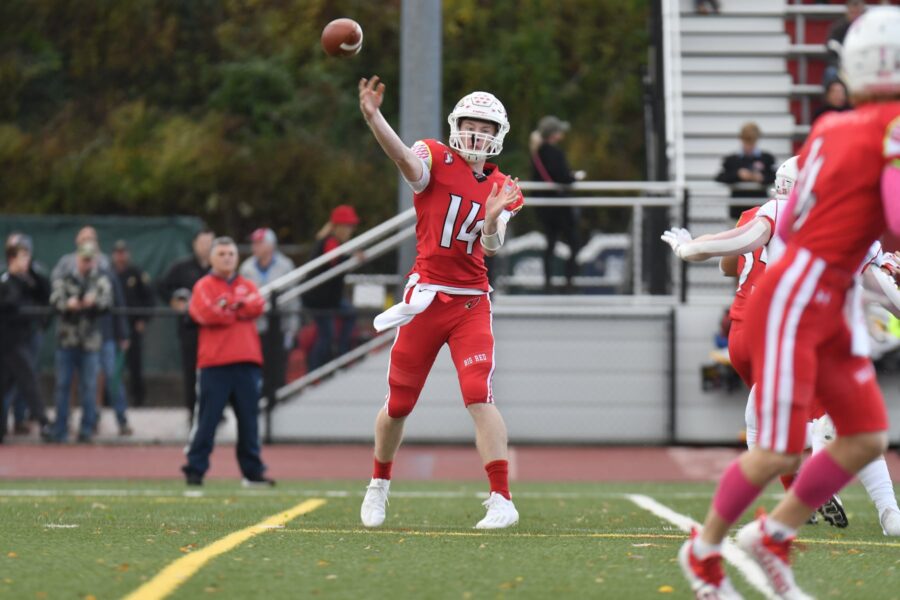 Greenwich Quarterback Jack Wilson releases a pass against New Canaan. Dave Ruden October 30, 2021 Leave a Comment