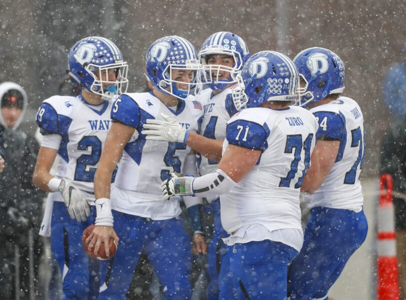 Darien quarterback Jack Joyce celebrates a touchdown to take a 14 point lead. Dave Ruden December 9, 2017 Leave a Comment