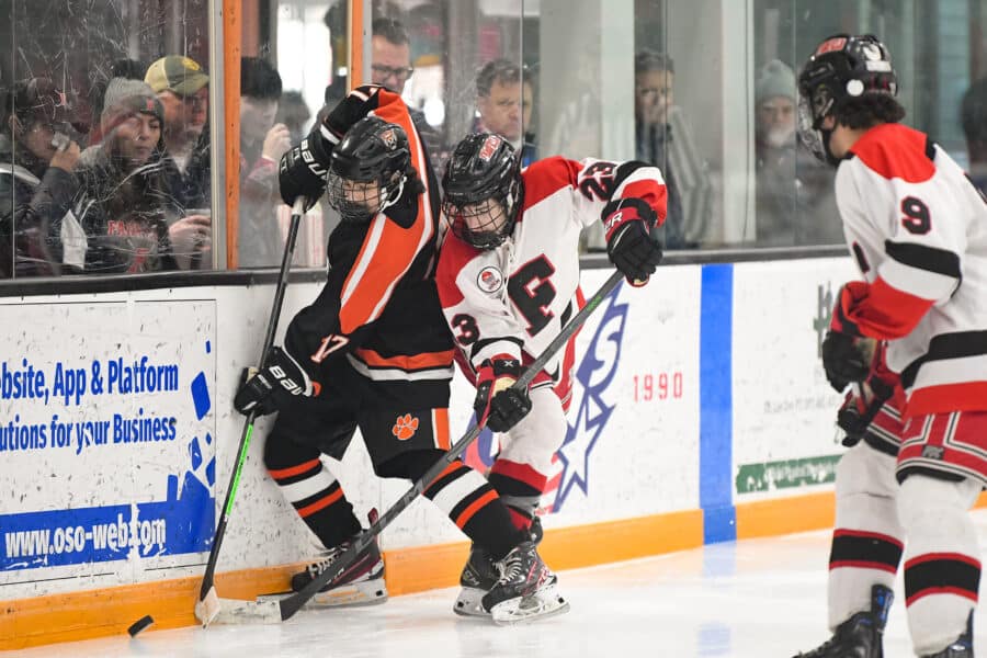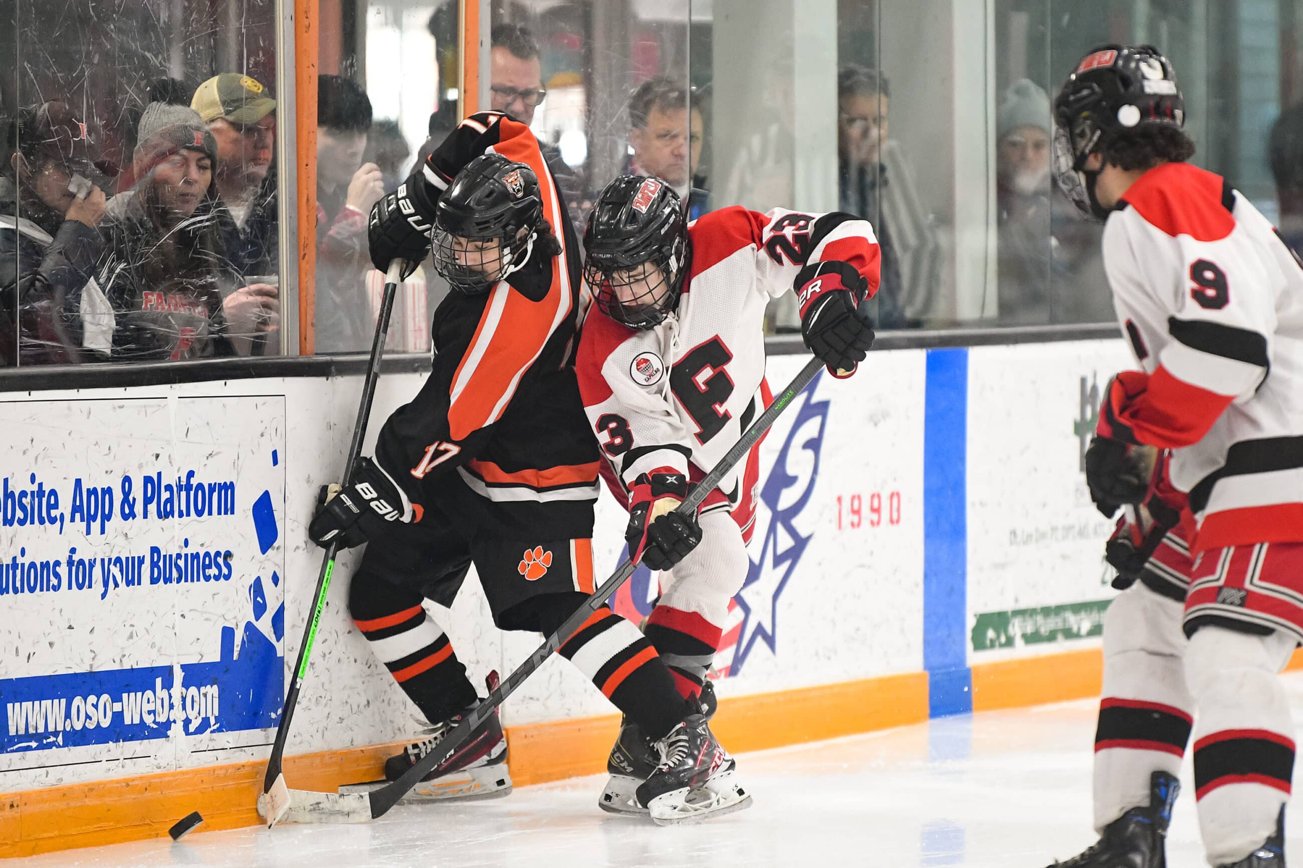 Ridgefield’s Ryan Carnicelli and Fairfield’s Liam Forrest (David G. Whitham) Dave Ruden March 5, 2022 Leave a Comment
