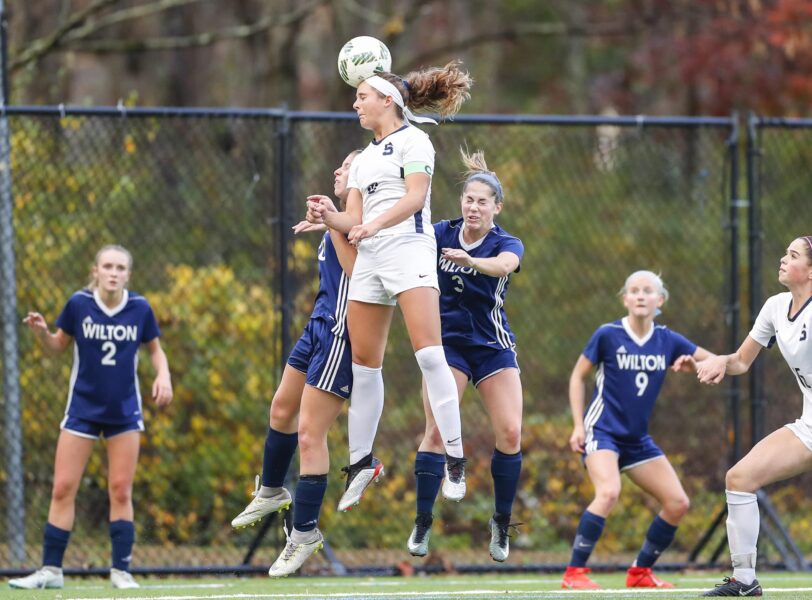 Staples’ Marlo Von der Ahe gets a head on the ball late in the game. Dave Ruden October 29, 2019 Leave a Comment