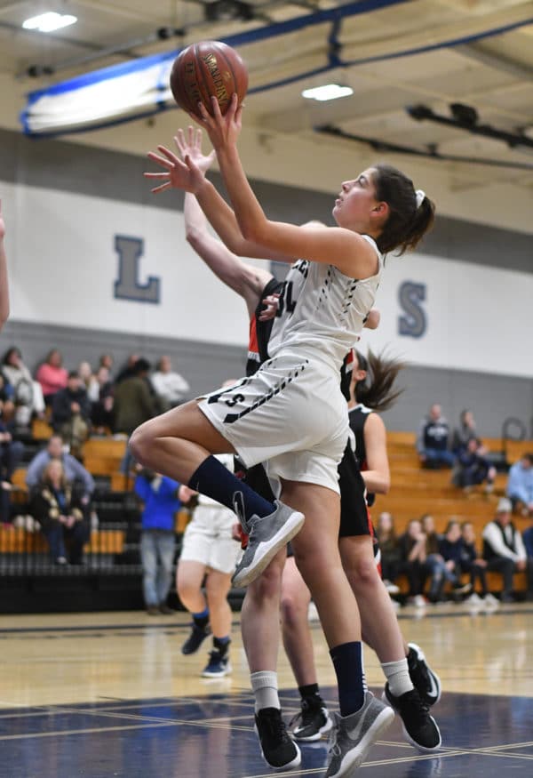 Ariana Gerig of Staples glides to the basket for two points.