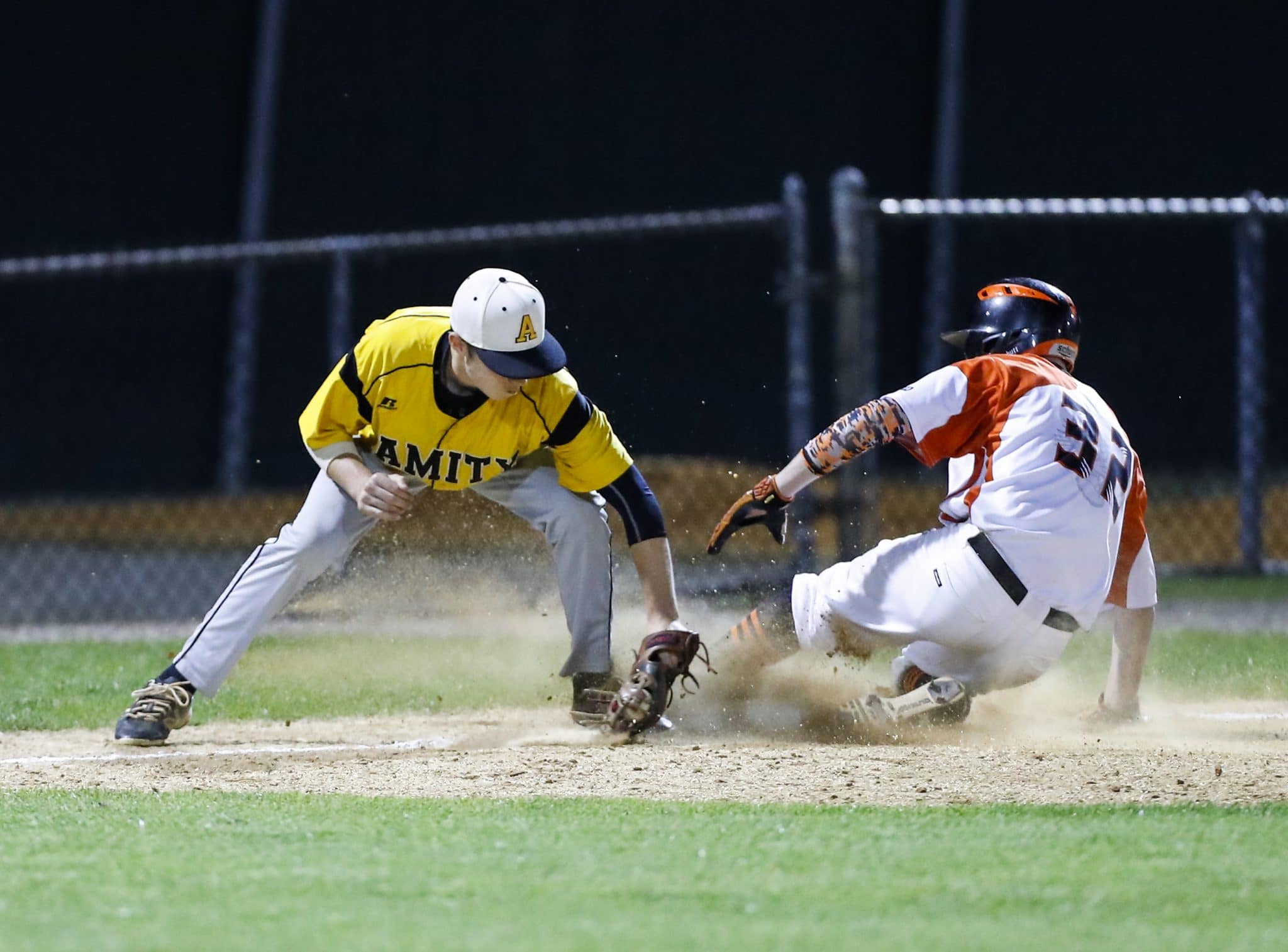 Ridgefield pinch runner Brandon Grizzaffi takes third on a wild pitch. Dave Ruden June 7, 2018 Leave a Comment