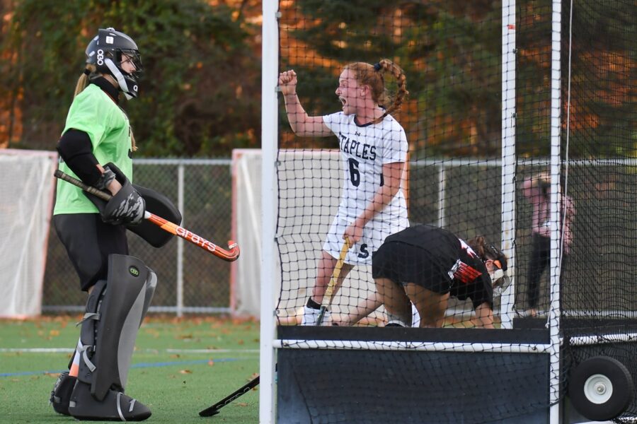 Emma Nahon reacts after scoring for Staples.