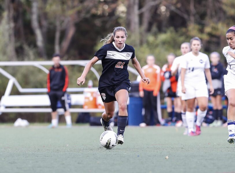 Ridgefield’s Katie Jasminski dribbles the ball across towards goal. Dave Ruden October 4, 2016 Leave a Comment