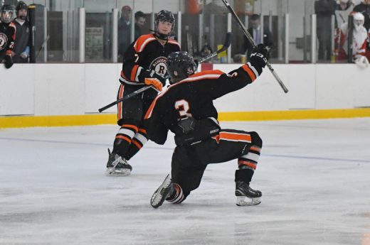 Matt Walker of Ridgefield celebrates after scoring for the tigers.