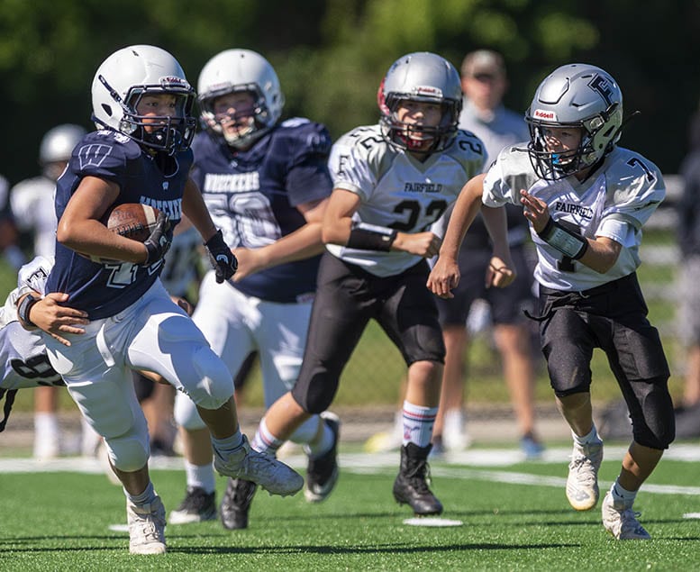 Westport North’s Blake Watkins finds running room in the 7th Grade game against Fairfield Silver.