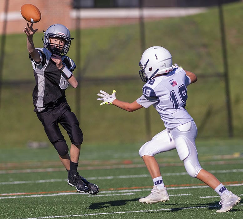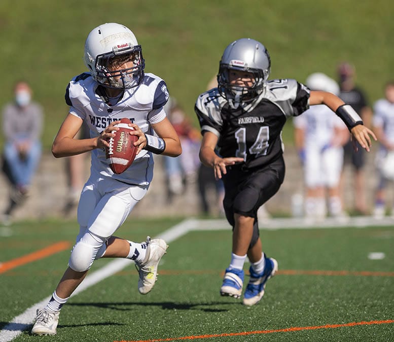 Fairfield Black quarterback Cole Stotler throws a pass in a 6th grade game against Westport North. (Mark Conrad)