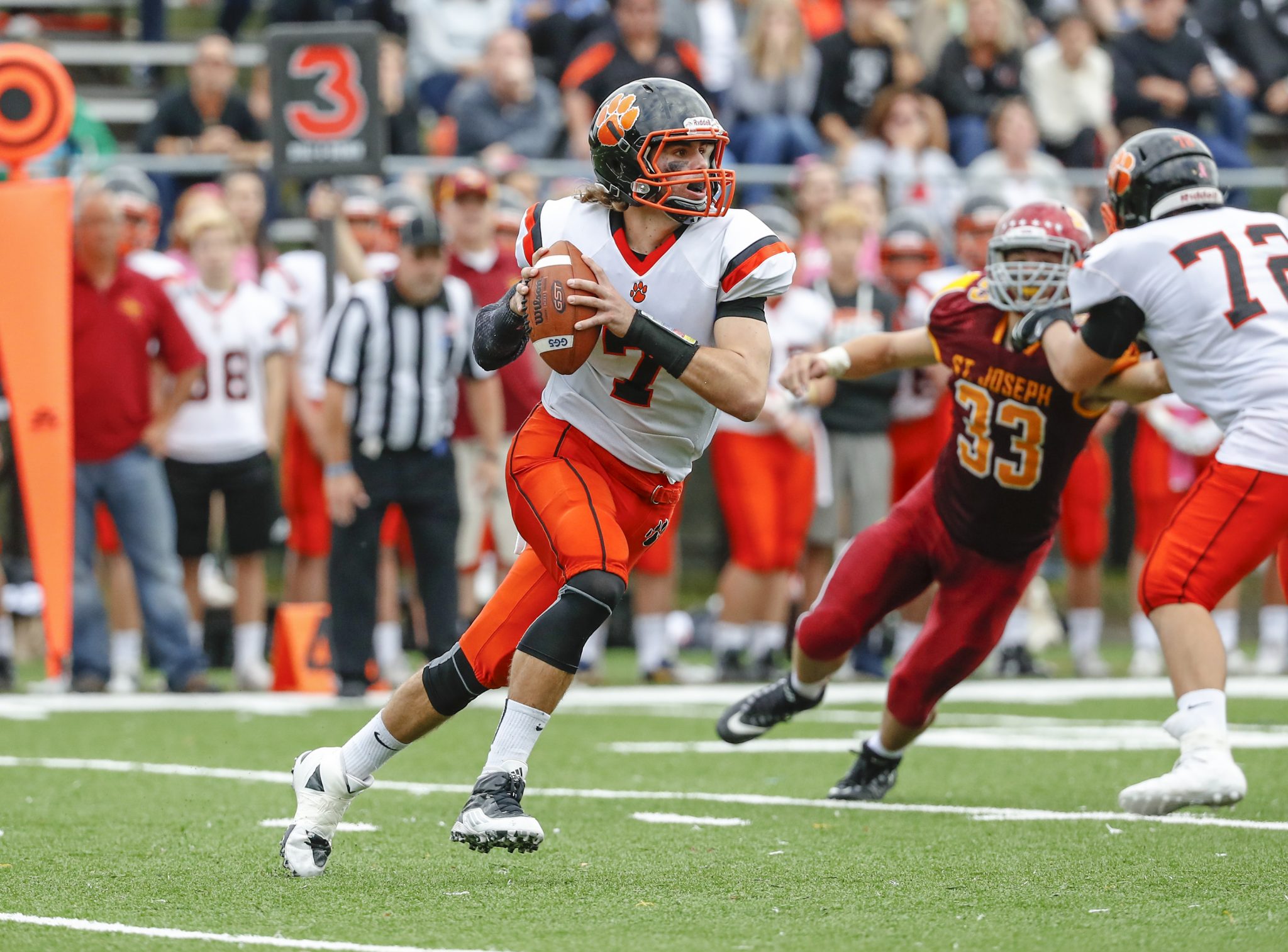 Ridgefield quarterback Greg Gatto scrambles to pass.