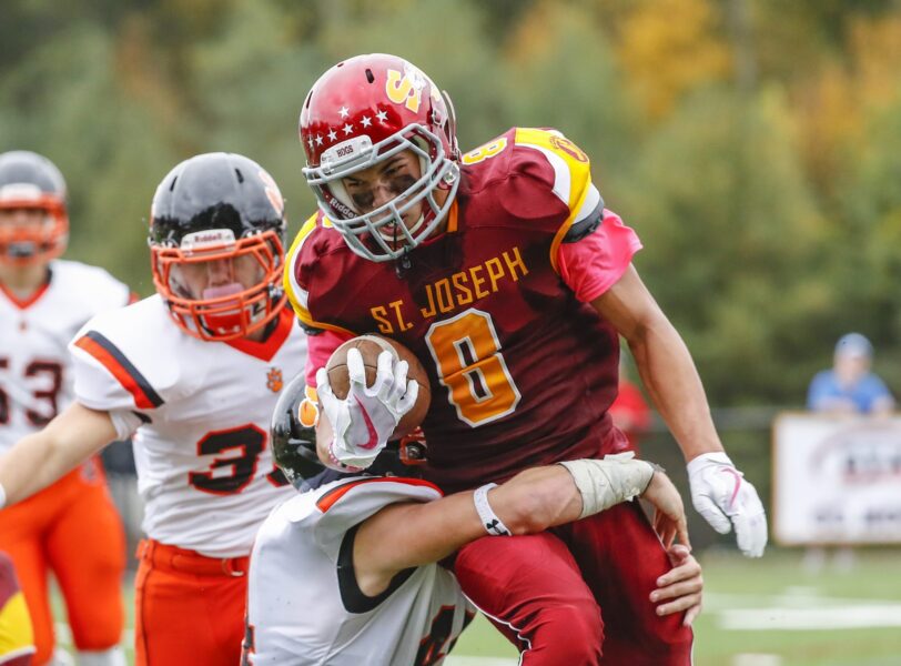St. Joseph’s Darren Warren tries to get an extra yard.