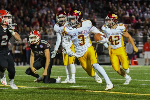 Jared Mallozzi (3) runs the ball up field against New Canaan. Dave Ruden September 8, 2017 Leave a Comment