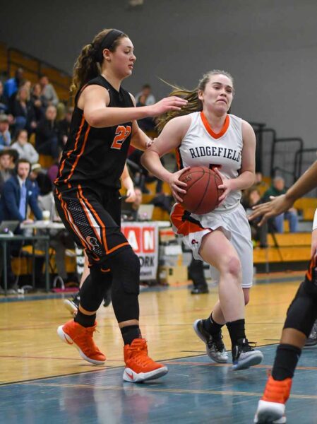 Julia Middlebrook (5) of the Ridgefield Tigers gets in the lane.