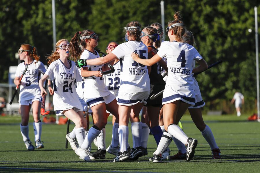 Staples celebrates a late goal to bring the score to 3-1 Darien. Dave Ruden October 24, 2019 Leave a Comment