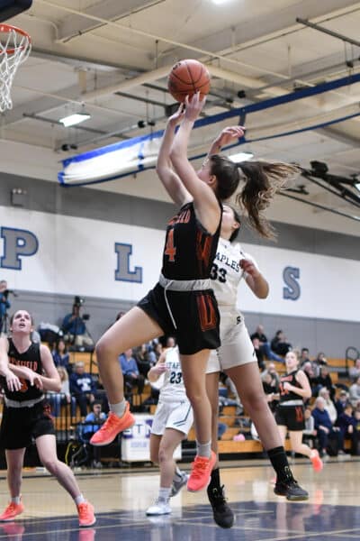Kathleen Flynn of Ridgefield drives to the basket.