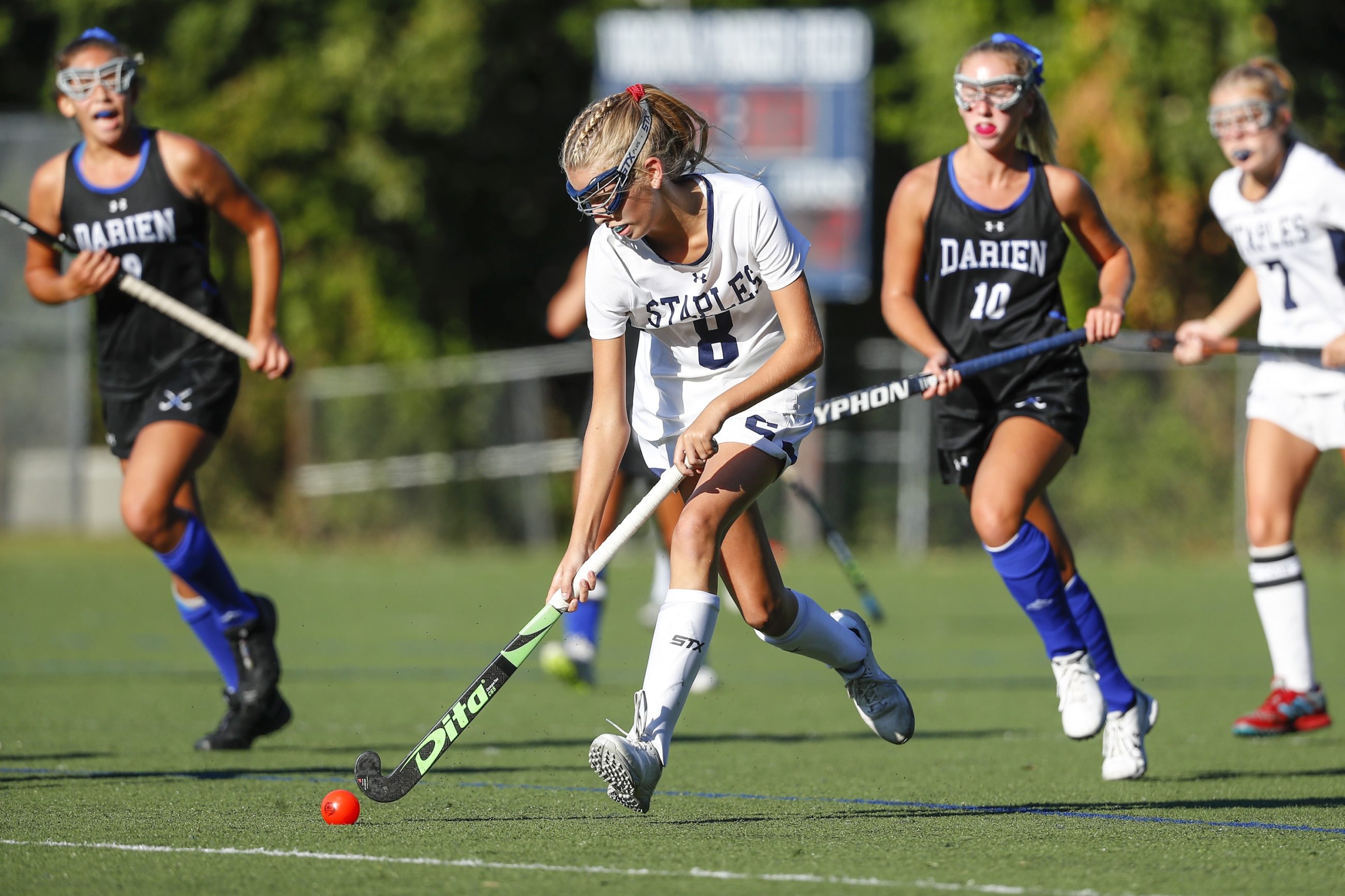 StaplesÕ Abigail Ragland brings the ball up field.