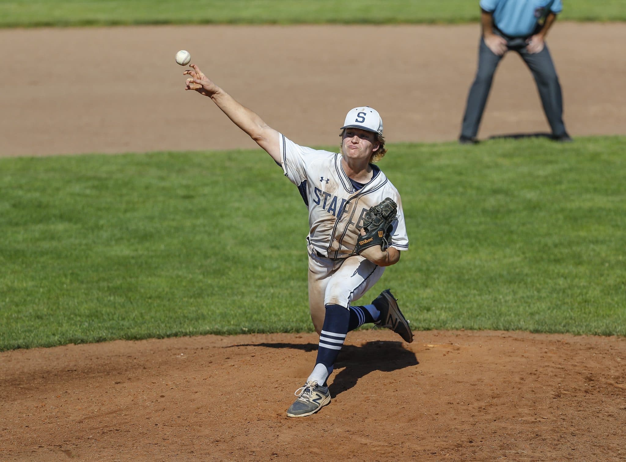 Staples’s pitcher Harris Azadian delivers a pitch.