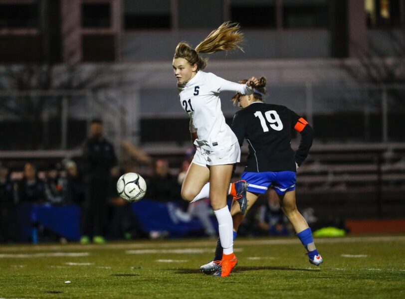 Staples’ Reese Sutter comes up with the ball against Darien’s Emily DeNunzio. Dave Ruden November 15, 2017 Leave a Comment