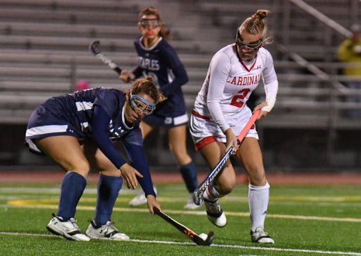 Christine Taylor of Staples is defended by Maggie O’Gorman of Greenwich.
