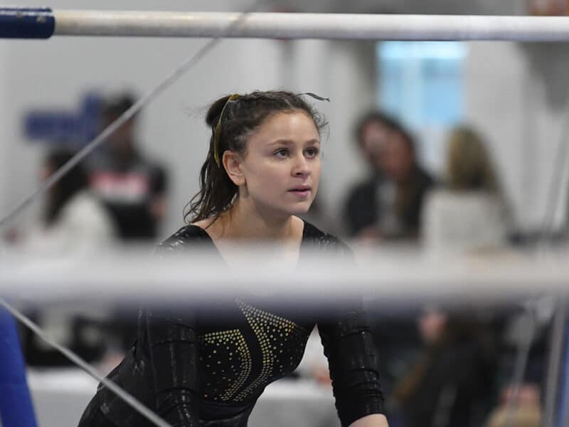 Trumbull’s Grace Rizzo prepares to mount the uneven bars. (John Nash) Dave Ruden February 8, 2025 Leave a Comment